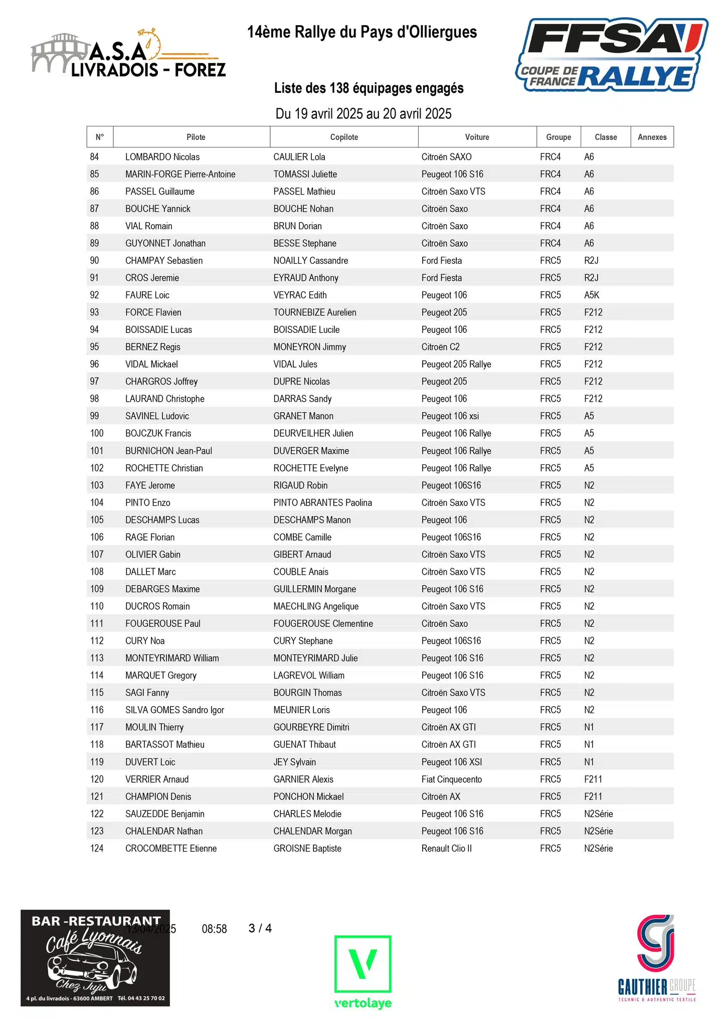 Rallye du Pays d’Olliergues 2025 – Liste des engagés