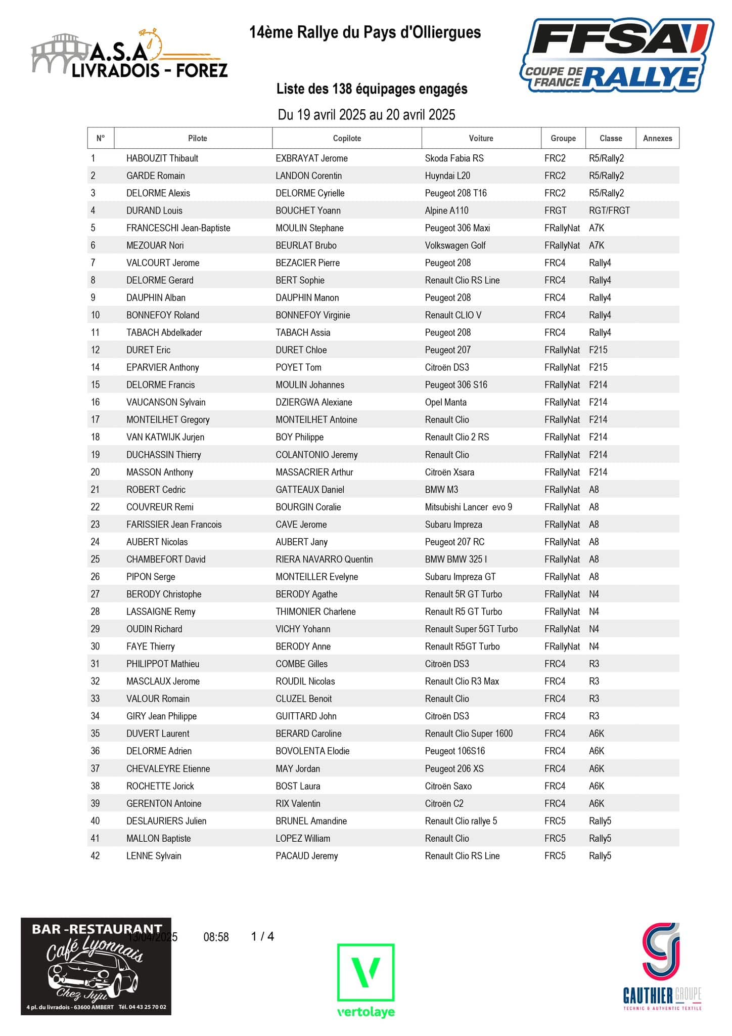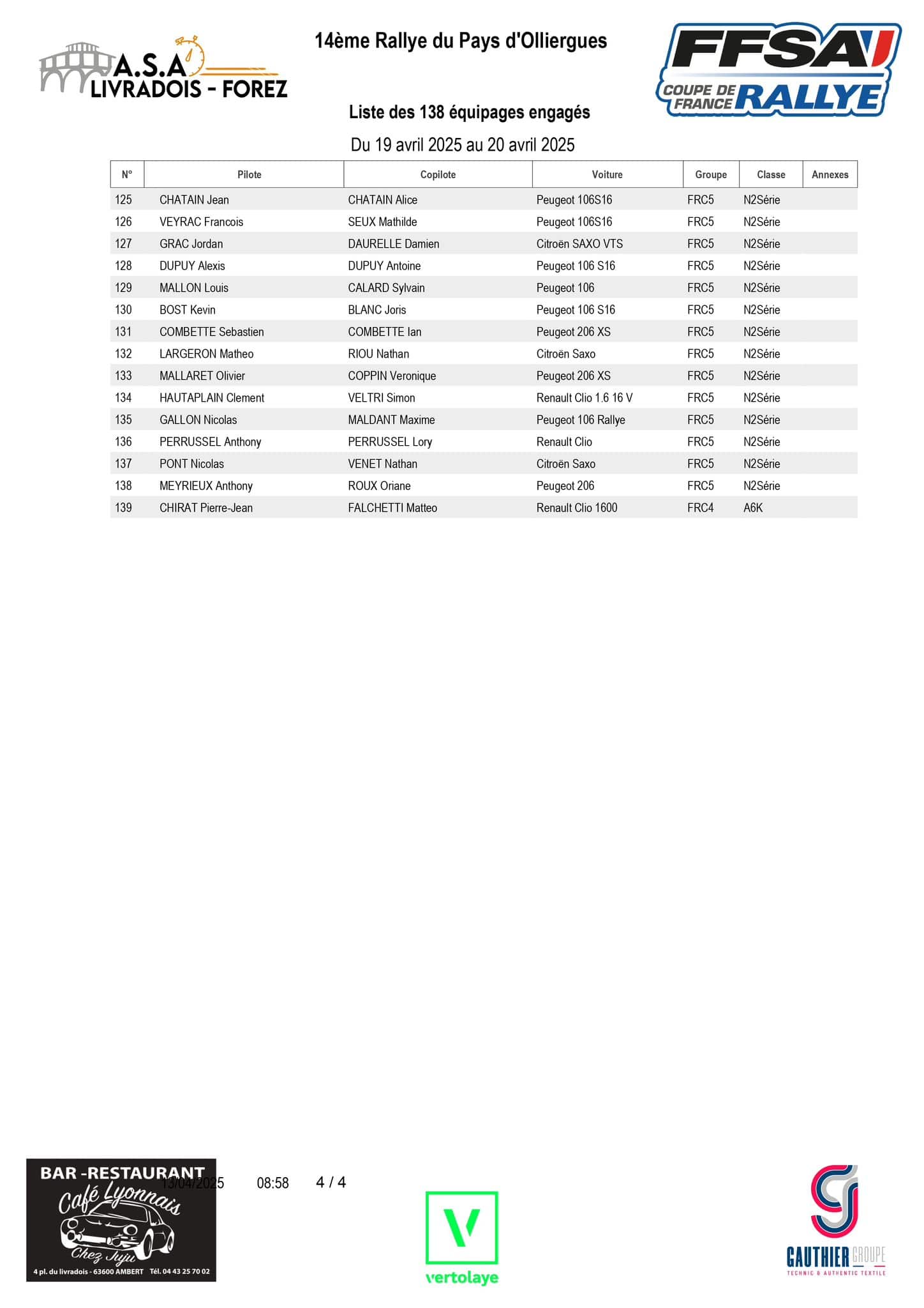 Rallye du Pays d’Olliergues 2025 – Liste des engagés
