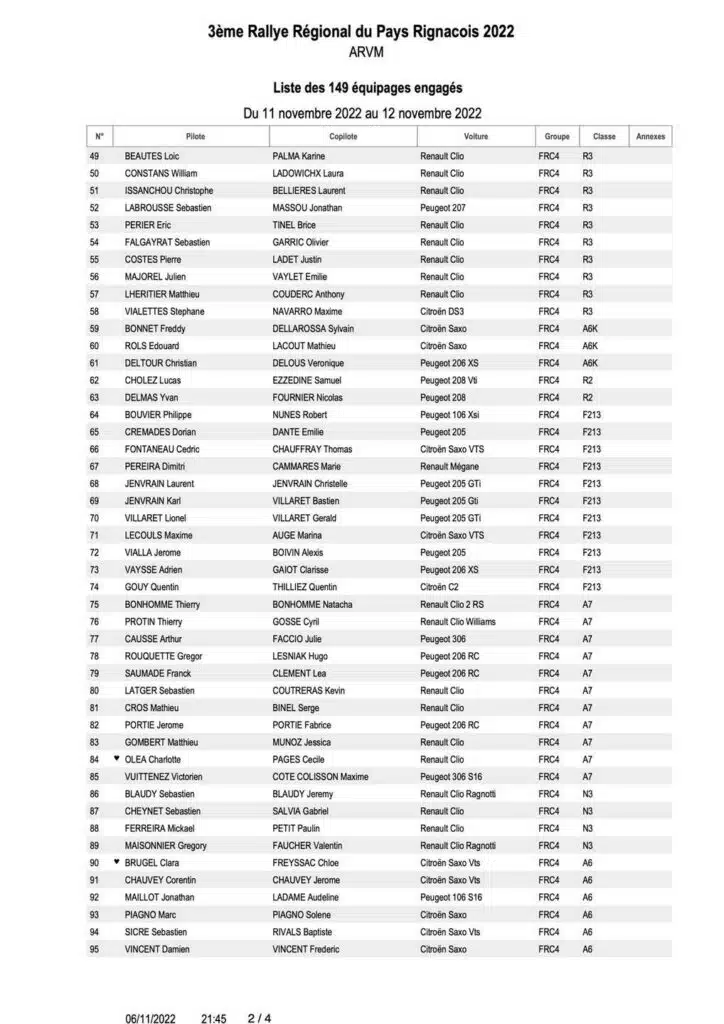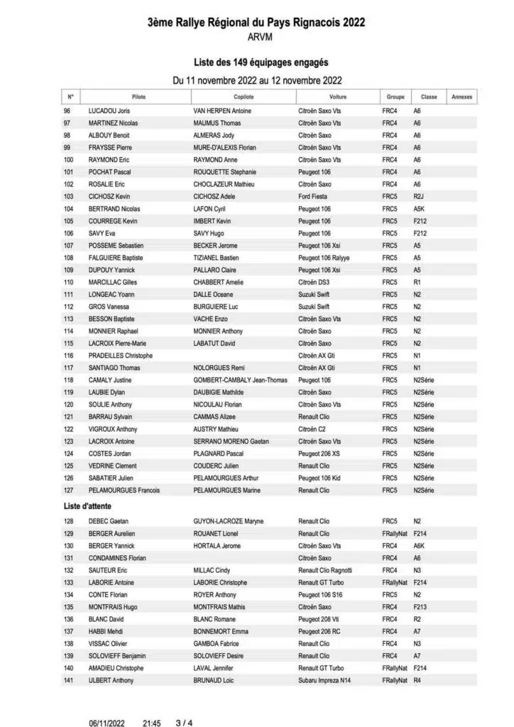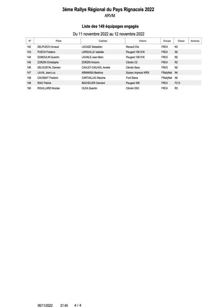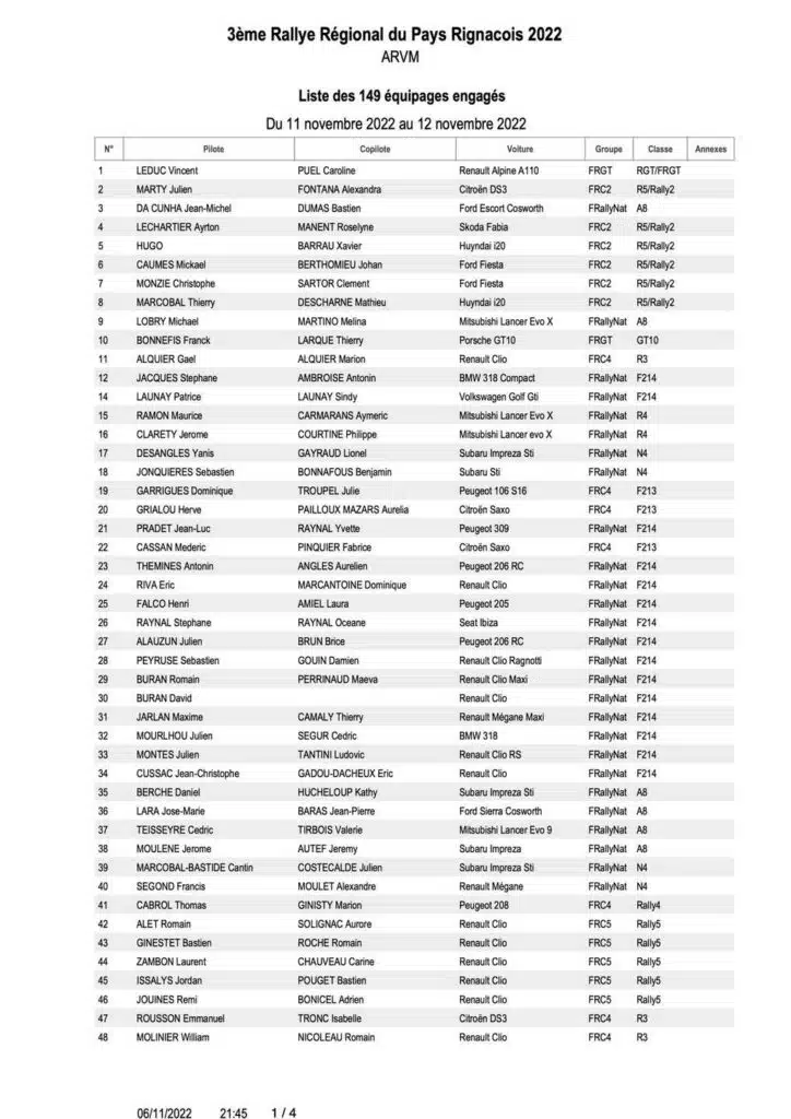 La 3 ème édition du Rallye régional du Pays Rignacois sera organisée les 11 et 12 novembre 2022 par l’ASA Route d’Argent avec au programme trois spéciales sur une seule journée de course.