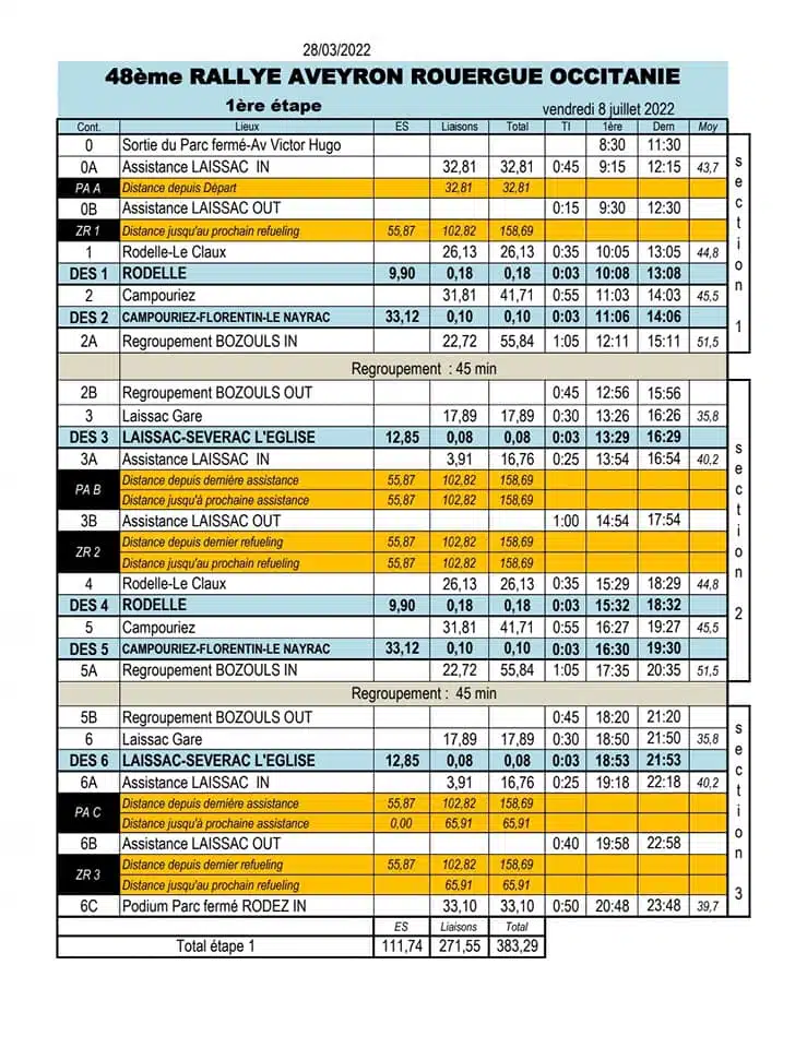 | Service Park D (Laissac - 15 min) | 10 Juillet 2022 - 09:15 | |||