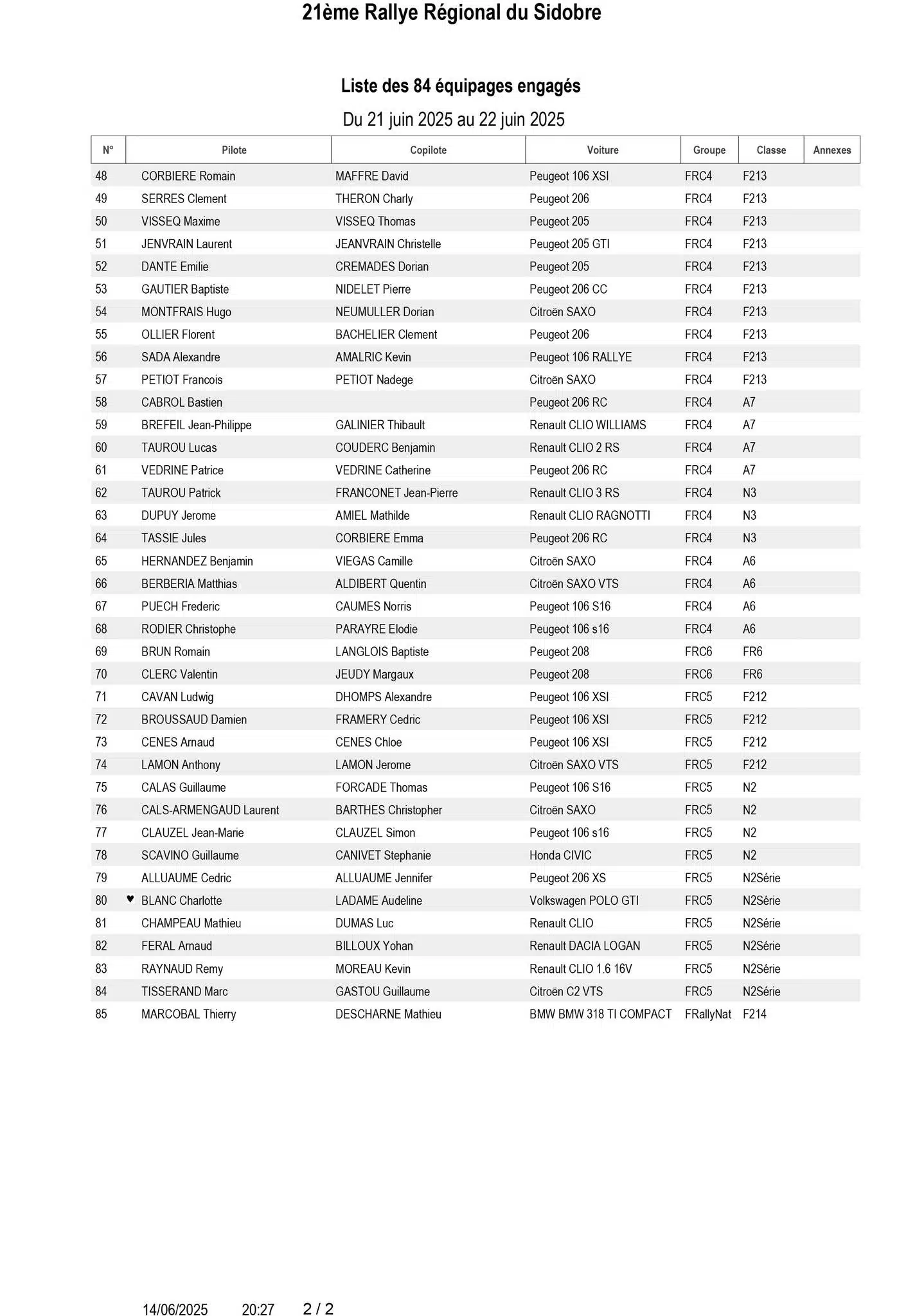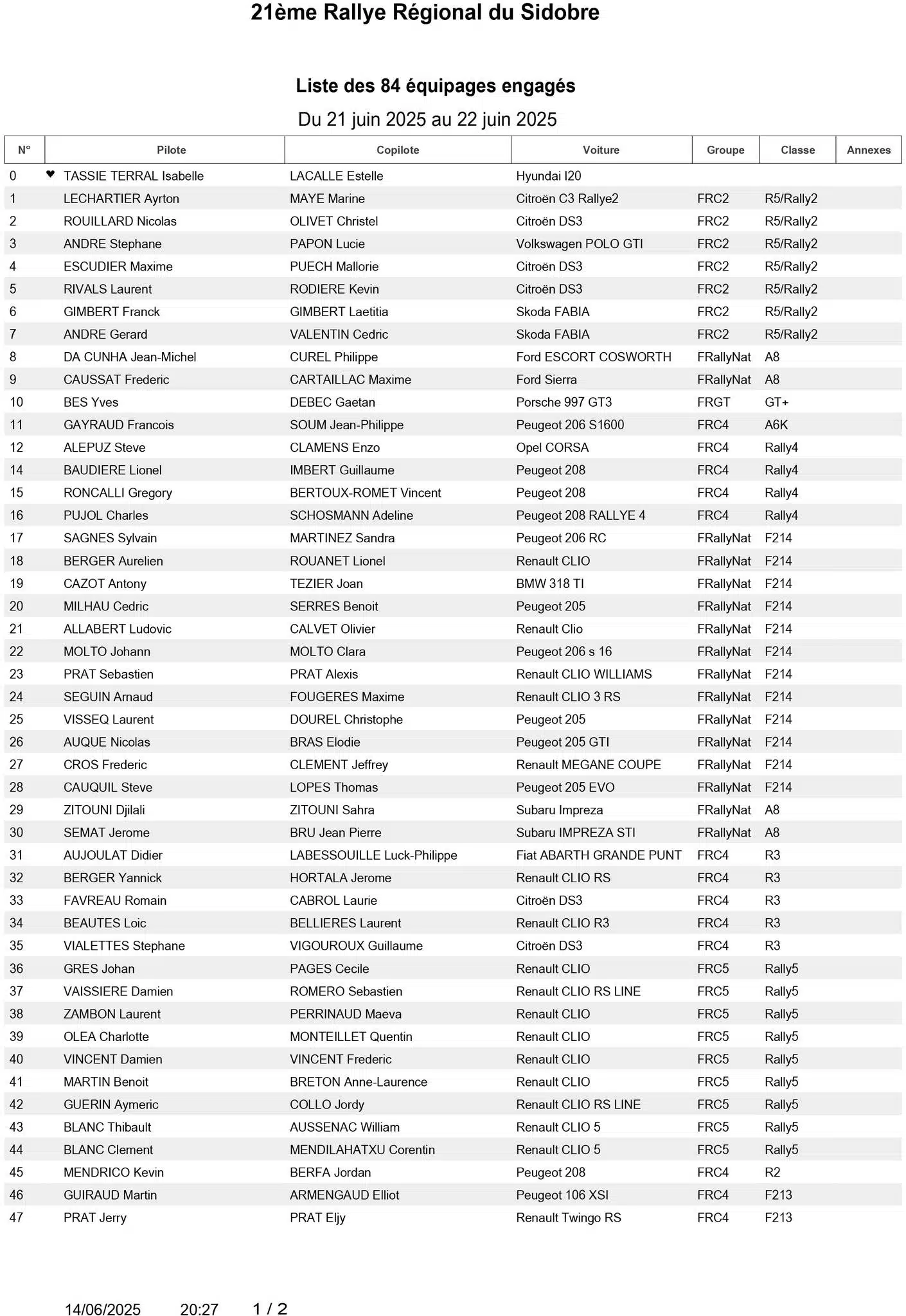 84 équipages seront au départ de l’épreuve avec une bataille pour la victoire qui se jouera entre sept Rally2 menées par Nicolas Rouillard, Ayrton Lechartier face à l’Escort de Jean-Michel Da Cunha.