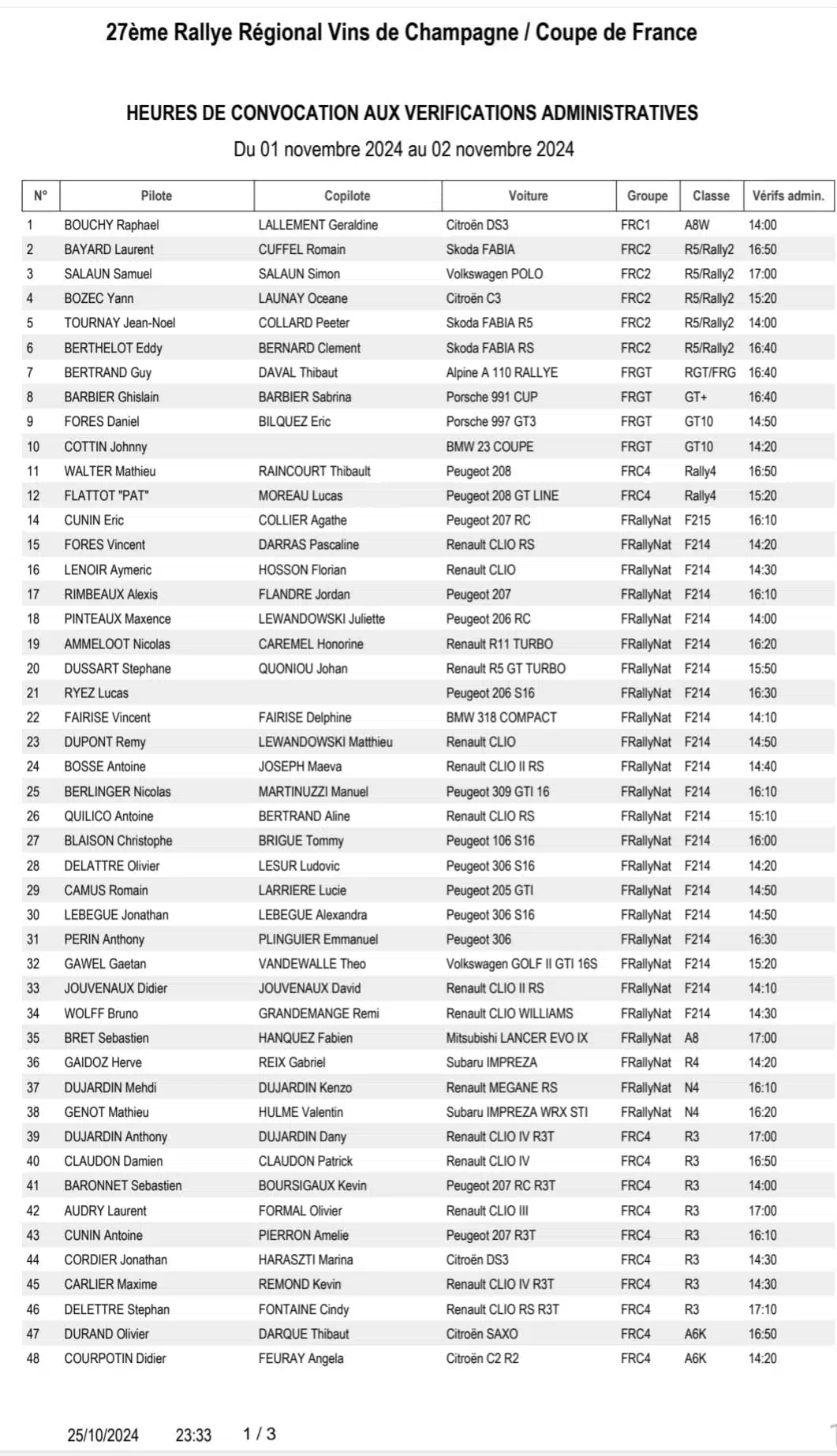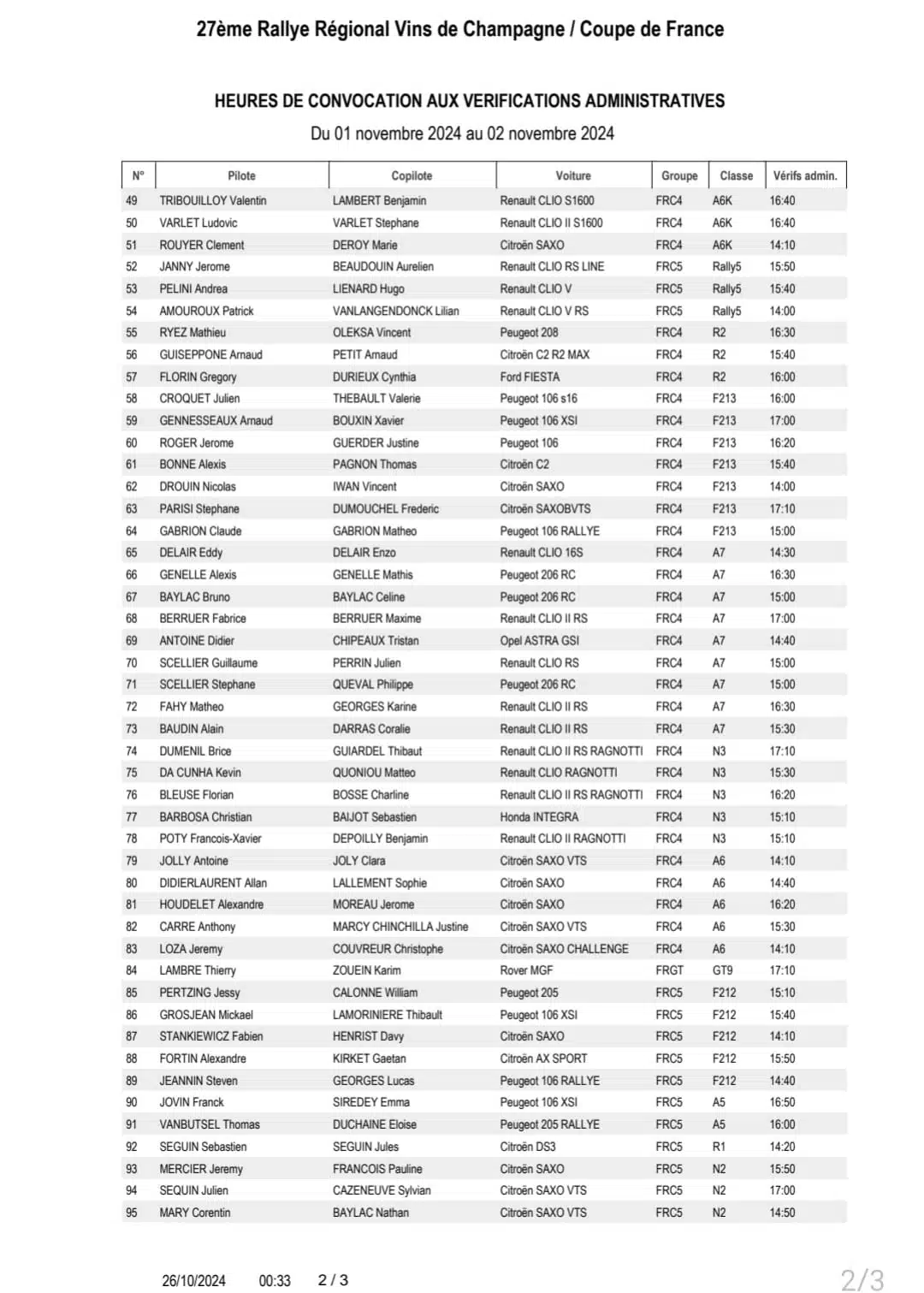 Un peu plus de 100 équipages seront engagés sur l’épreuve en moderne avec cinq Rally2 qui seront menées par Samuel Salaun à la poursuite de la DS3 WRC de Raphael Bouchy.