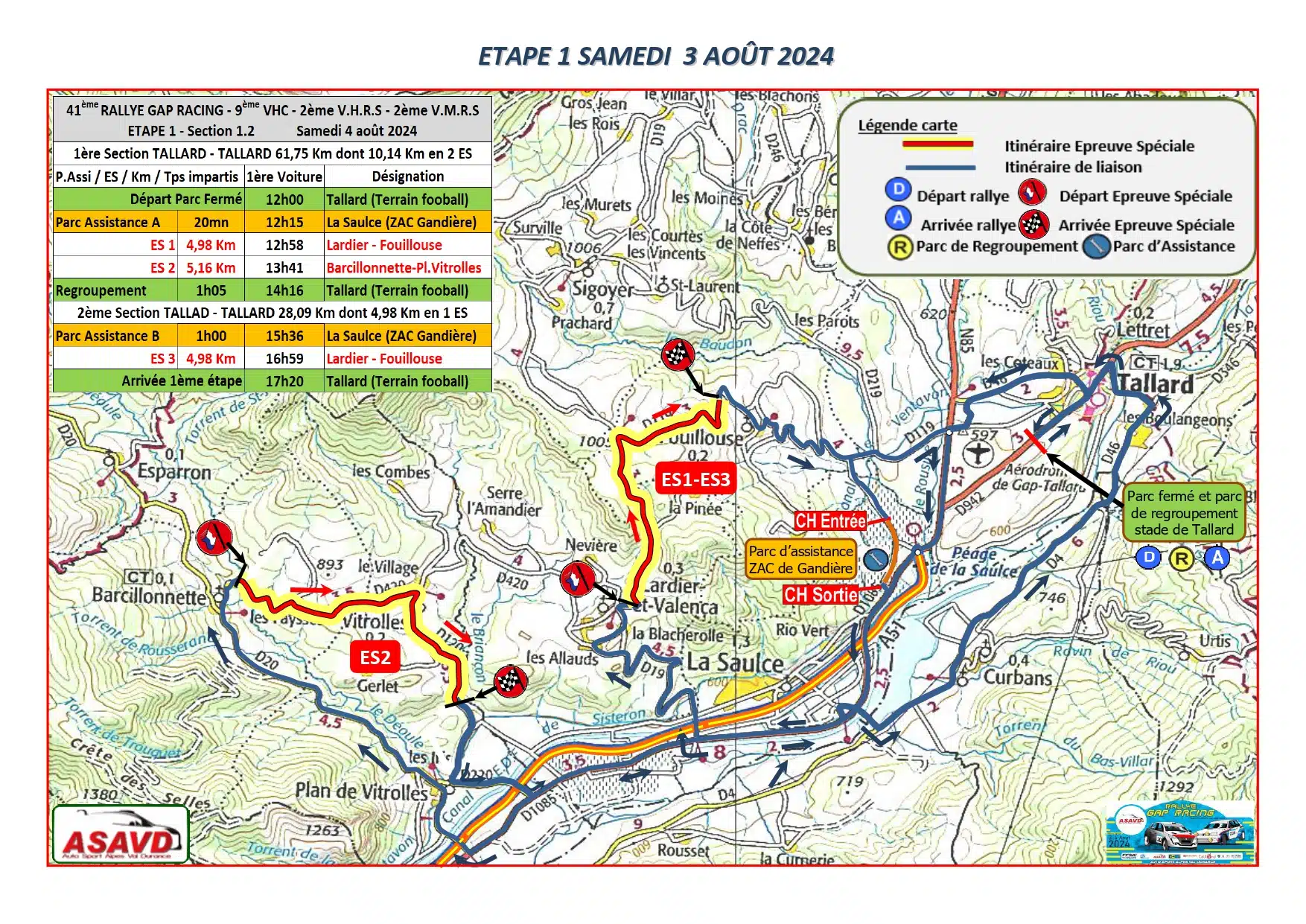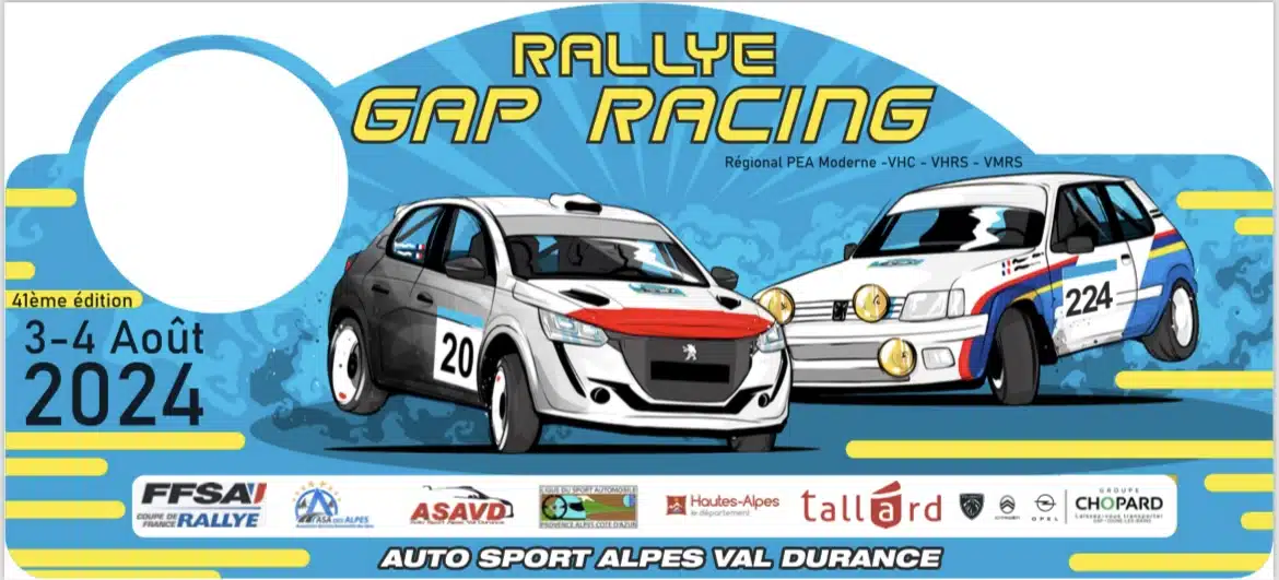 Le Rallye GAP Racing 2024 sera organisé les 3 et 4 août 2024 par l’ASA des Alpes et l’Auto Sport Alpes Val Durance avec au programme six spéciales sur deux journées de course.