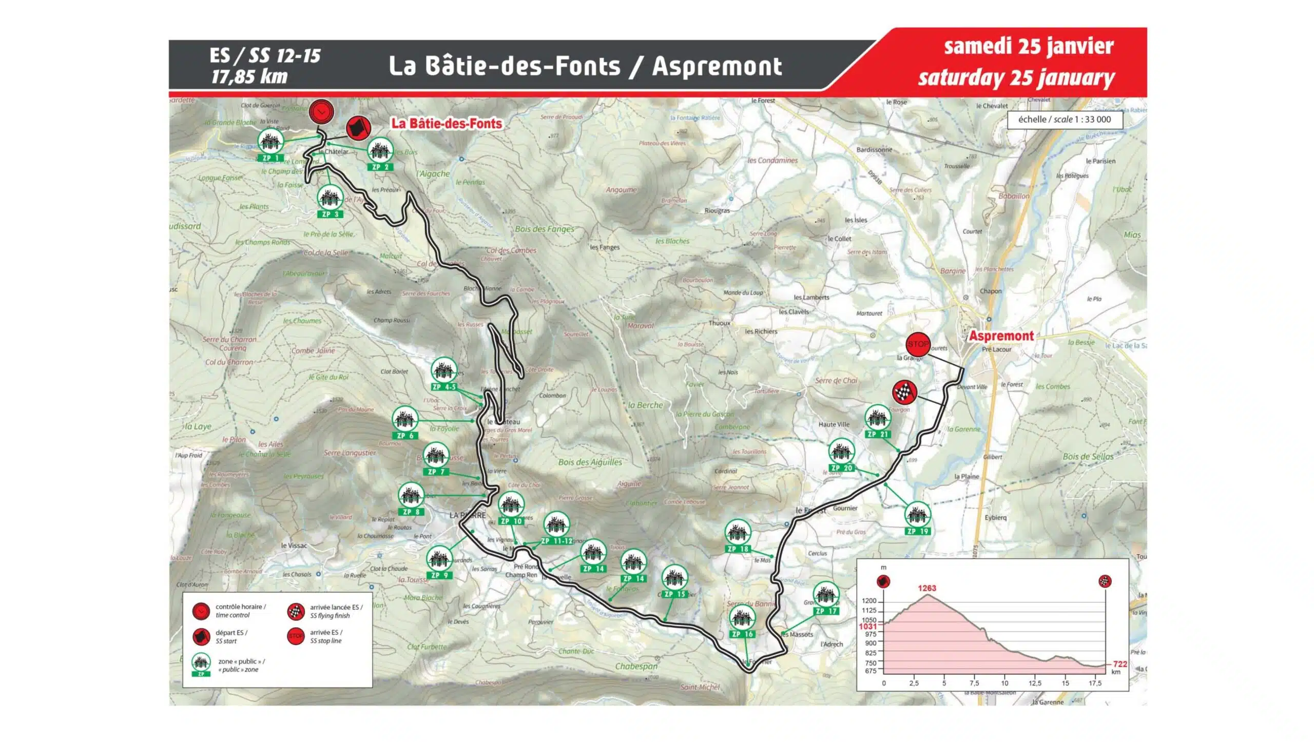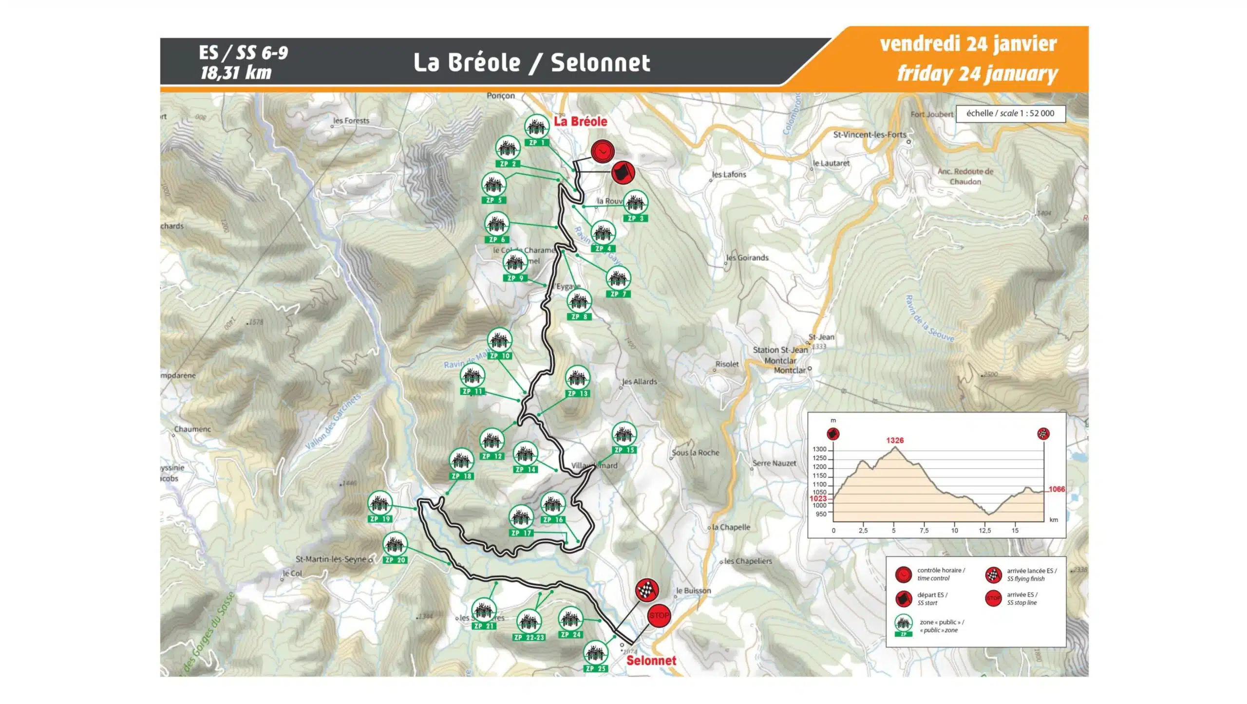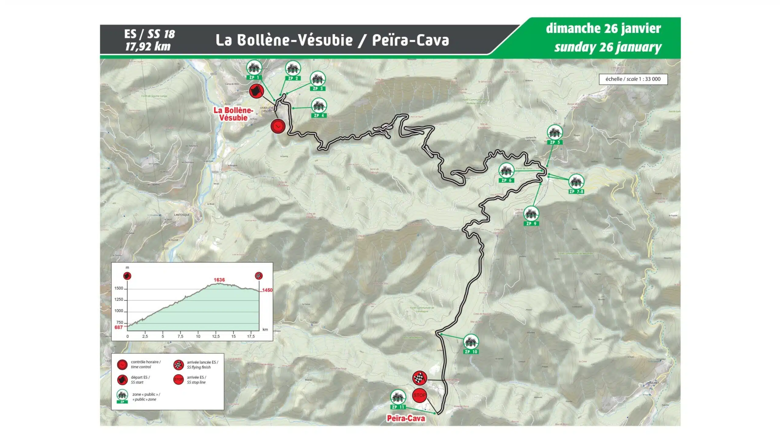 | ES18 | La Bollène-Vésubie / Peïra-Cava (Power Stage) | Dimanche 26 Janvier 2025 | 12h15 | 17,97 km |