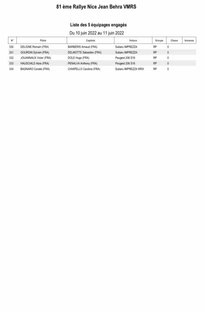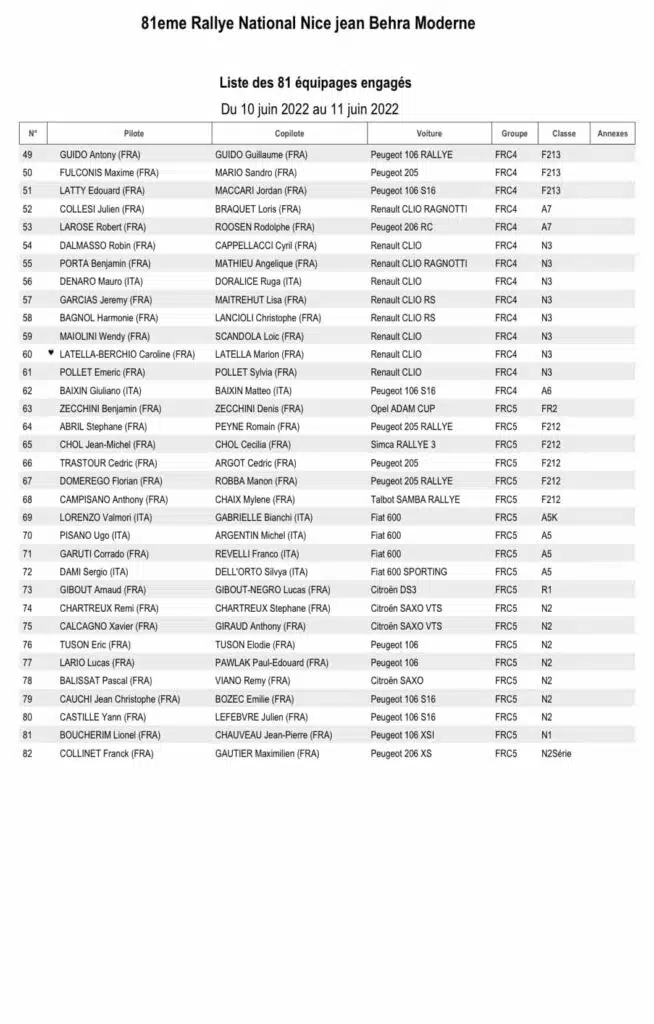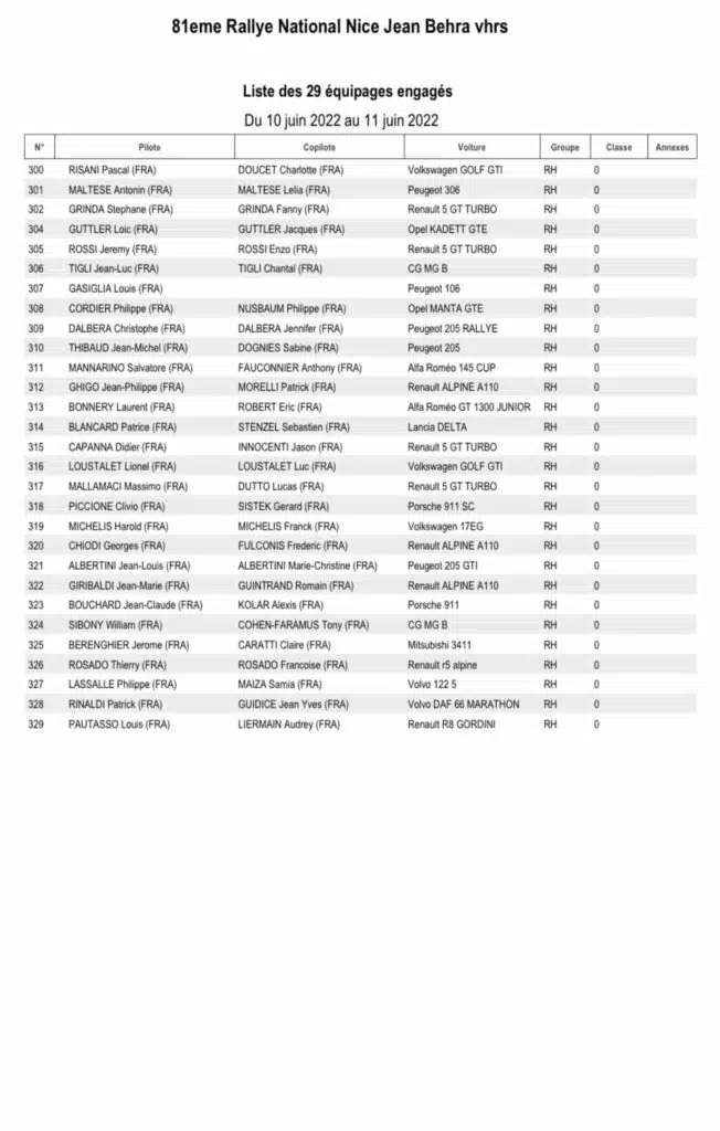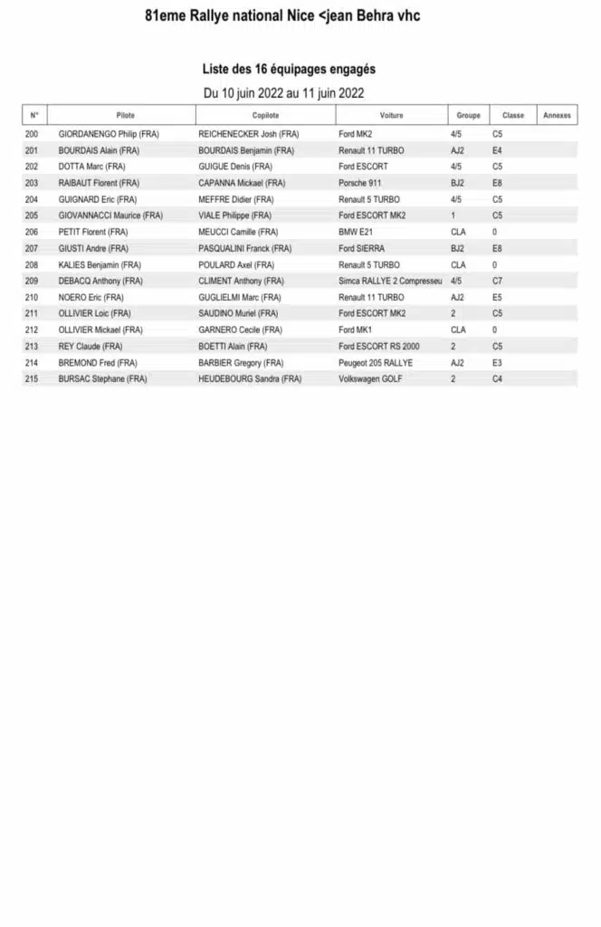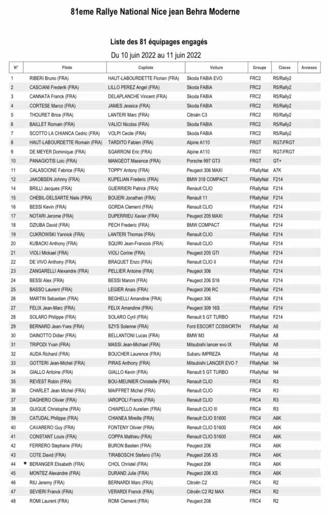 La 81 ème édition du Rallye national Nice – Jean Behra & VHC VHRS LPRS LTRS sera organisée du 10 au 12 juin 2022 par l’ASAC Nice, ligue Provence Alpes – Côte d’Azur. Le 81ème Rallye Nice Jean Behra représente un parcours de 245.72 km. Il est divisé en 1 étape et 3 sections