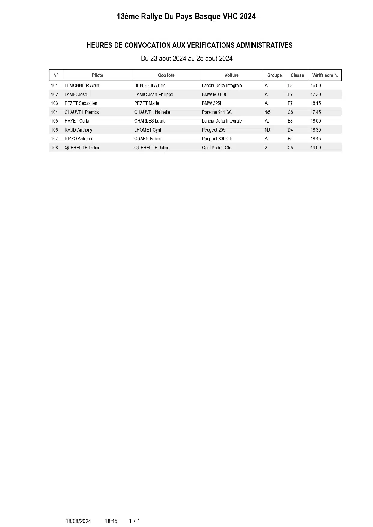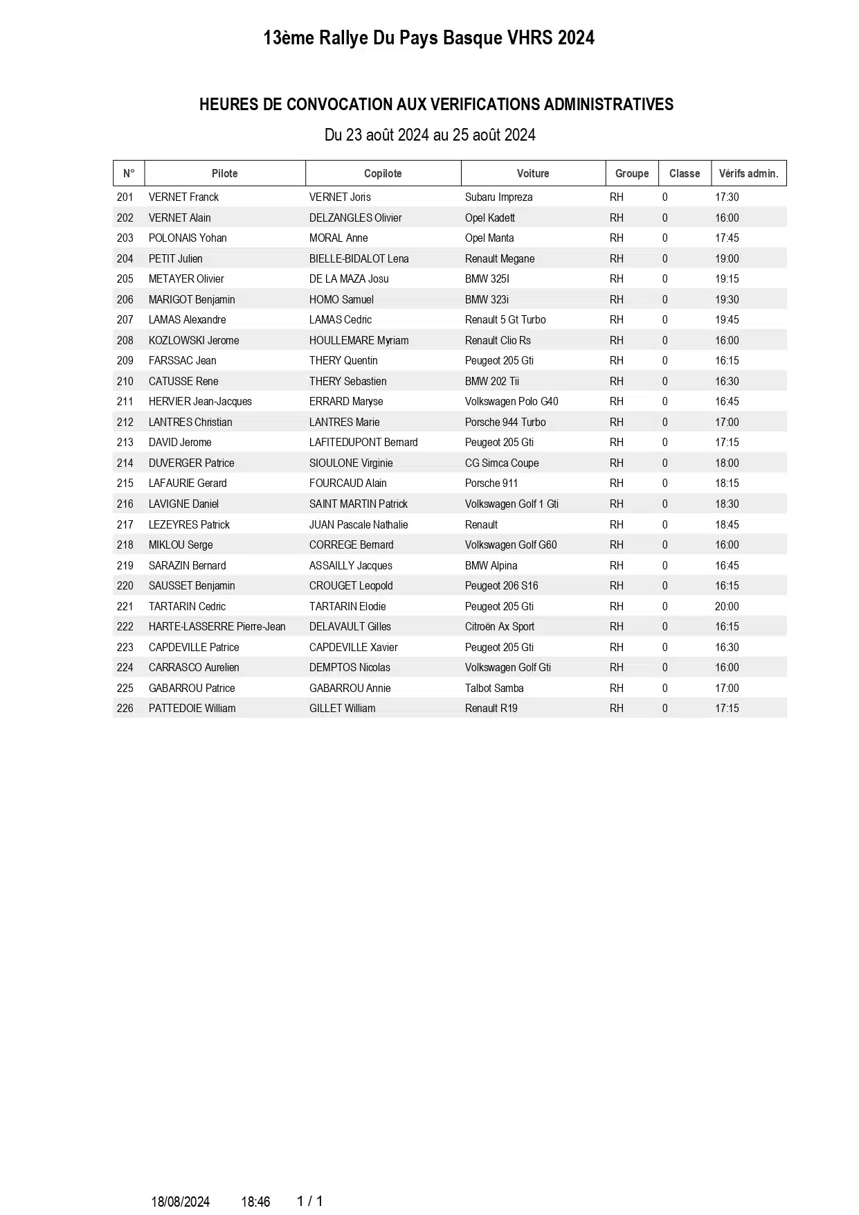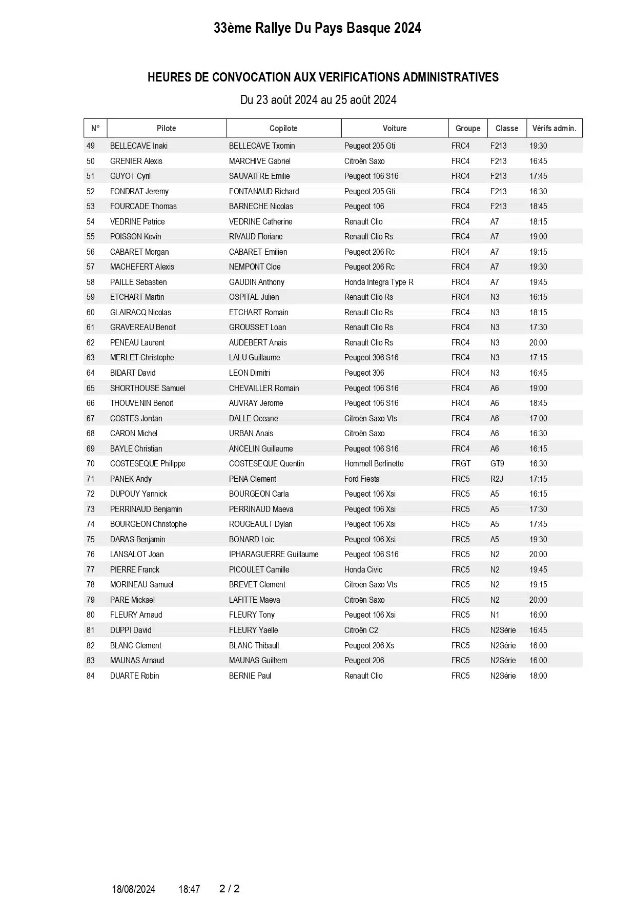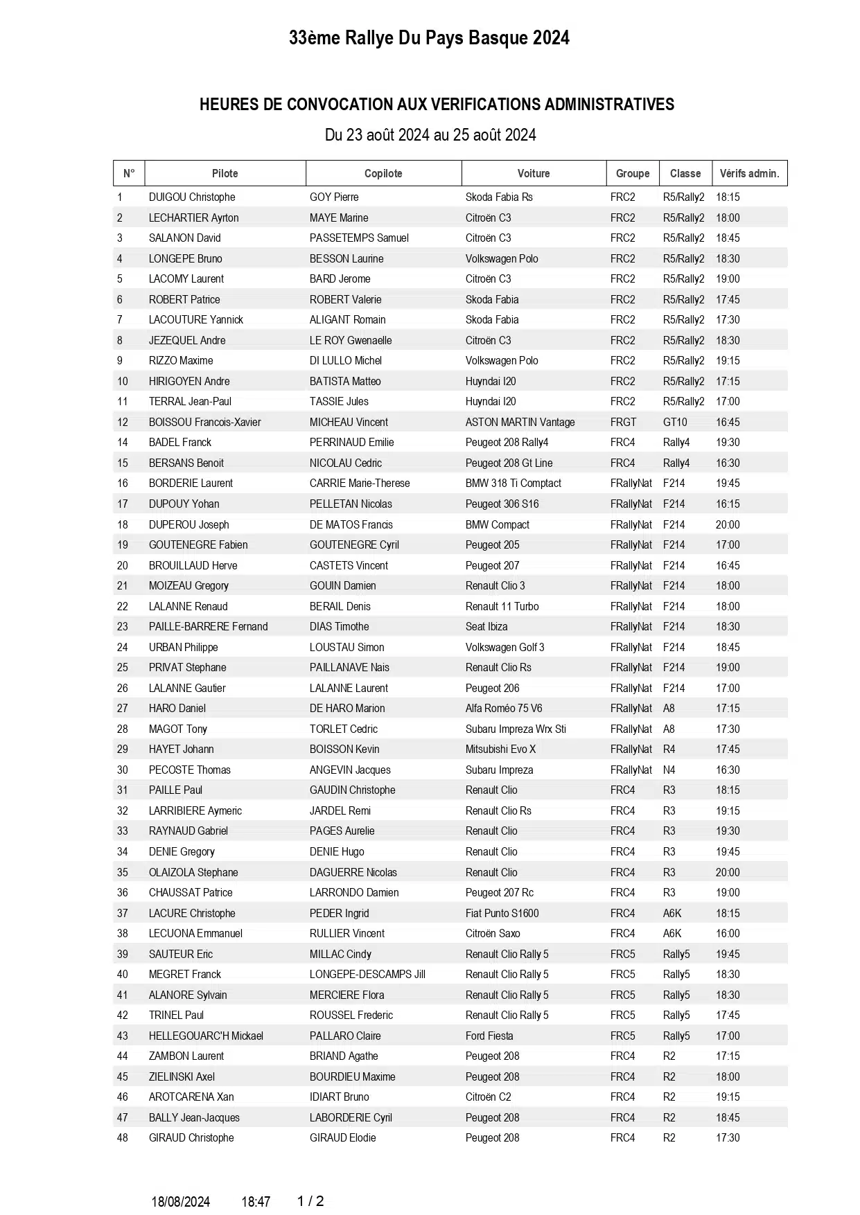 Le Rallye du Pays Basque 2024 sera organisé du 23 au 25 Aout 2024 avec 11 spéciales au programme et la liste des engagés vient d’être publiée.