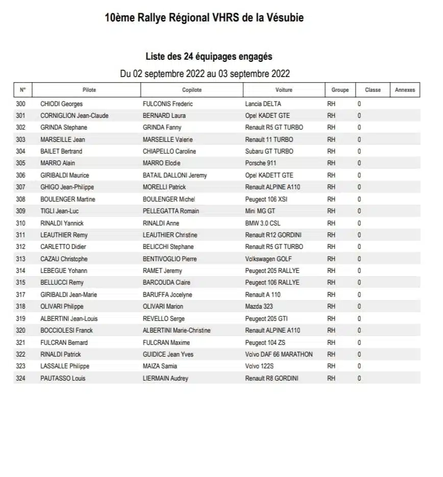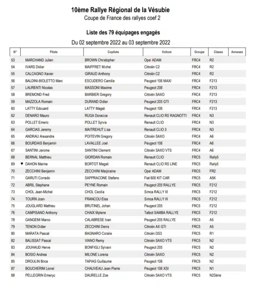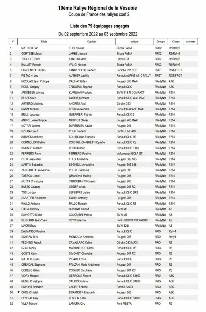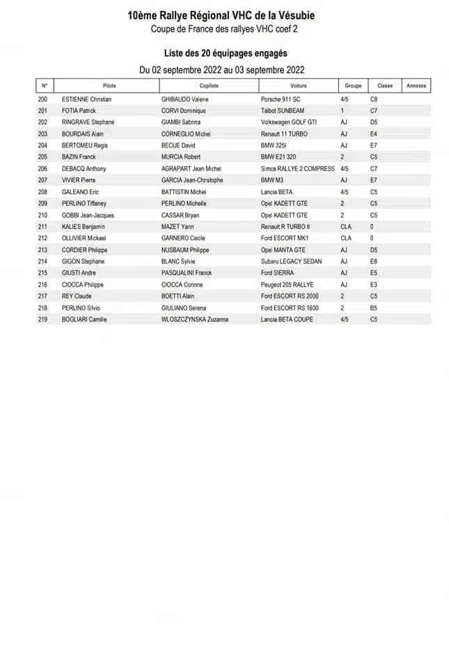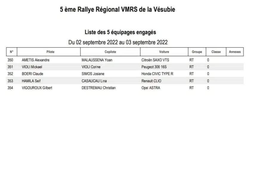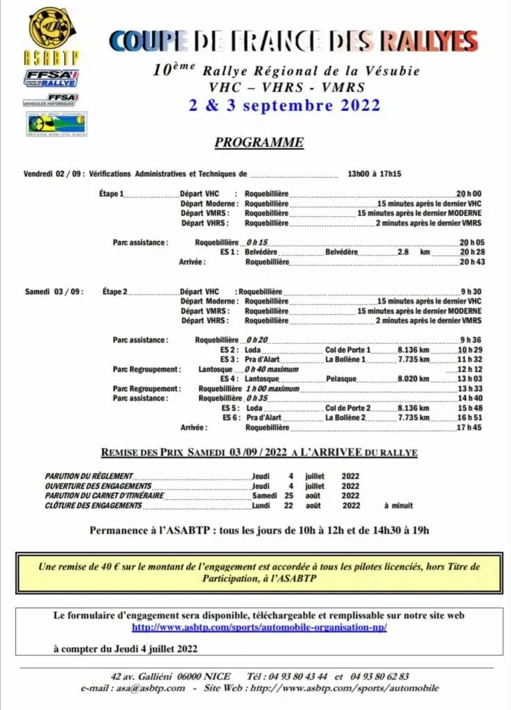 La 10 ème édition du Rallye Régional de la Vésubie se déroulera les 2 et 3 Septembre 2022. Au programme six spéciales sur deux jours de course avec 79 équipages engagés en moderne.