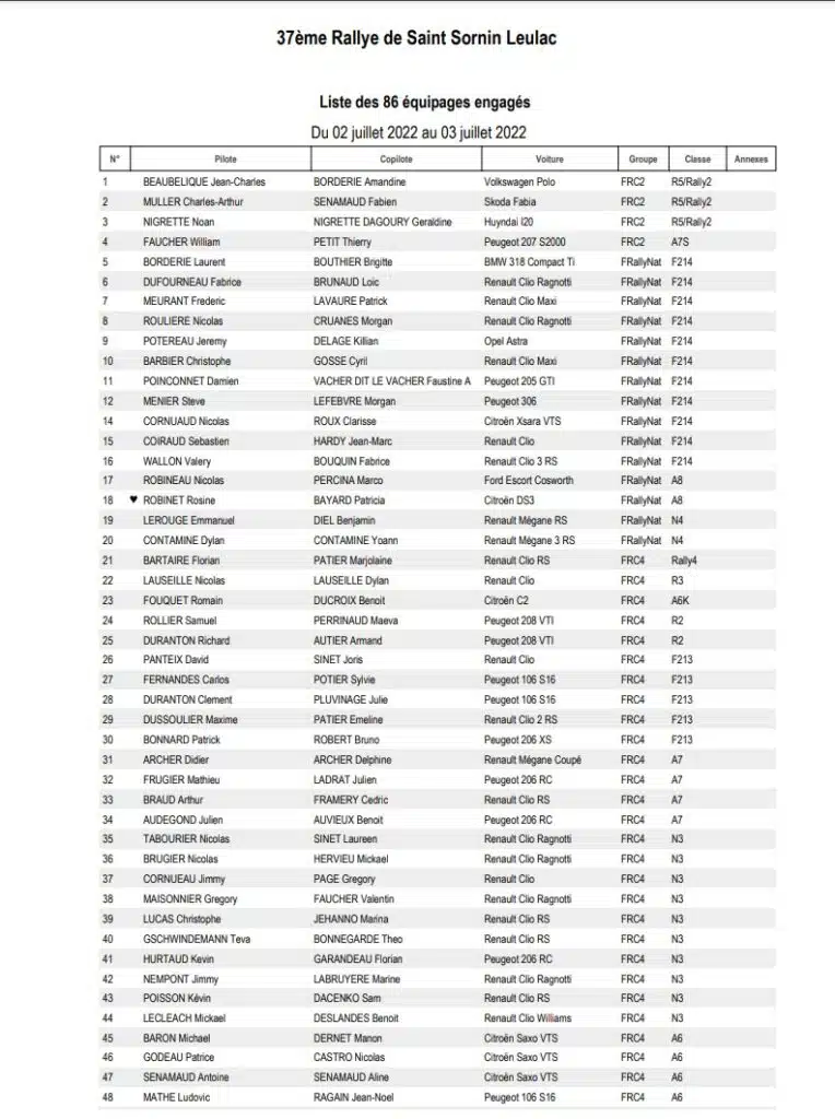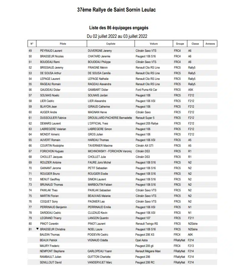 La 37 ème édition du Rallye régional de Saint-Sornin-Leulac sera organisée les 2 et 3 juillet 2022 par l’ASA Mauve. Comptant pour la Coupe de France des Rallyes, le Rallye régional de Saint-Sornin-Leulac 2022 sera déroulera sur parcours de 87 km comportant 5 spéciales chronométrées d’un total de 40 km.