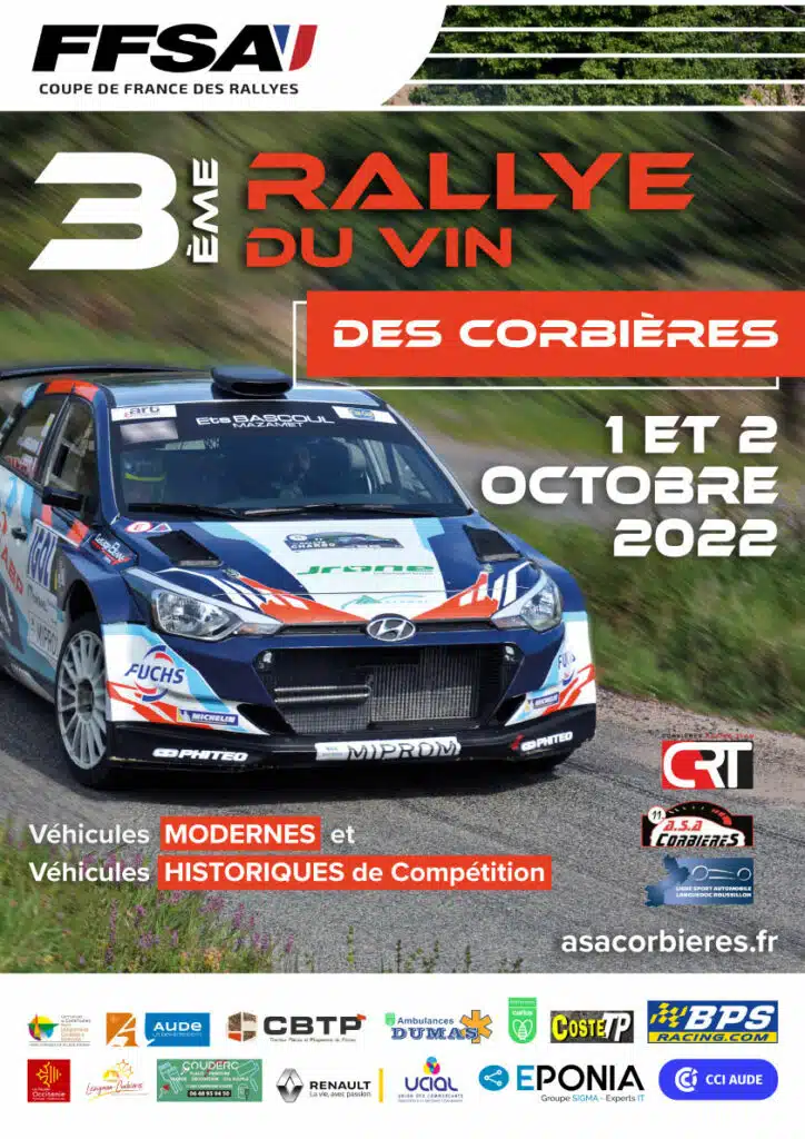 Troisième édition du Rallye régional du Vin des Corbières qui organisé les 1er et 2 octobre 2022 par l’ASA des Corbières.