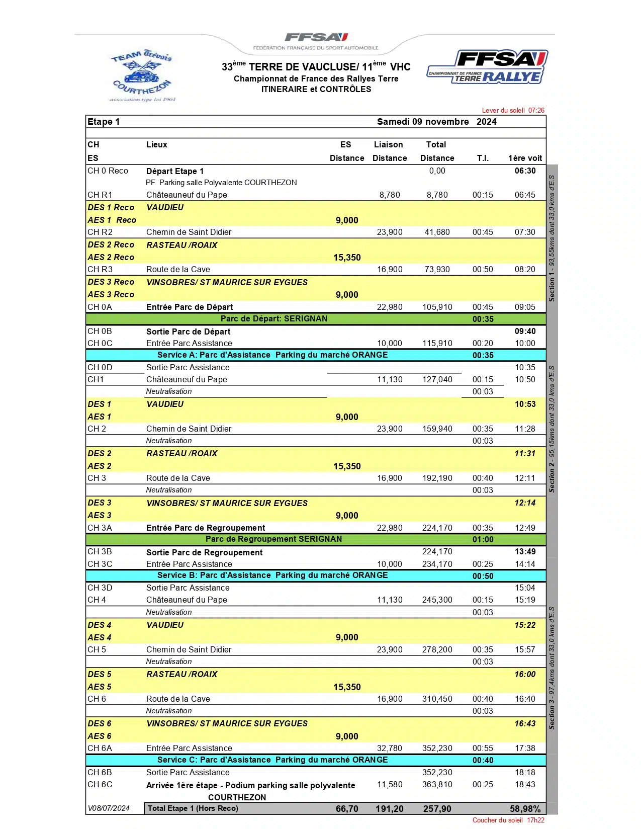 | ES5 | RASTEAU /ROAIX | Samedi 9 Novembre 2024 | 16h00 | 15,350 kms |