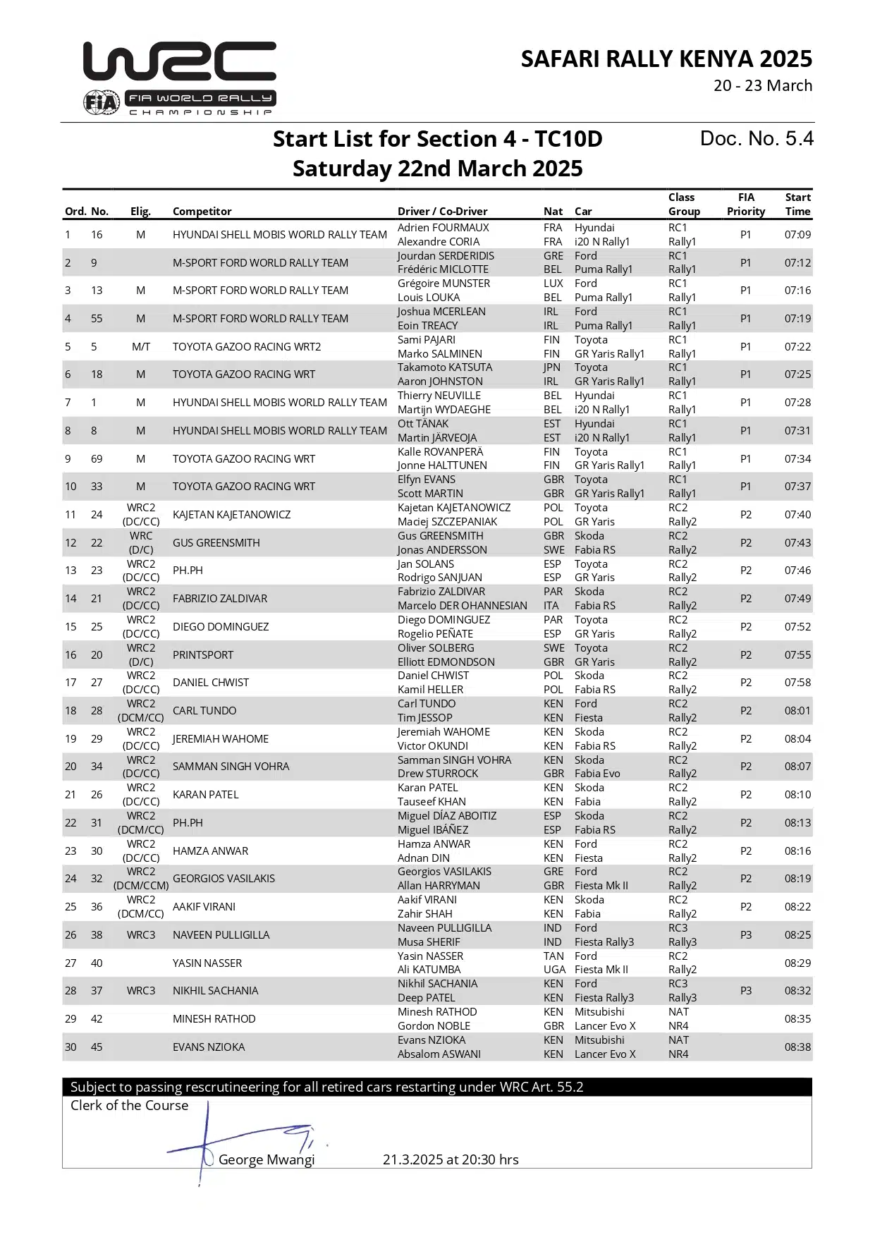 Safari Rally Kenya 2025 – Liste de départ – Etape 3