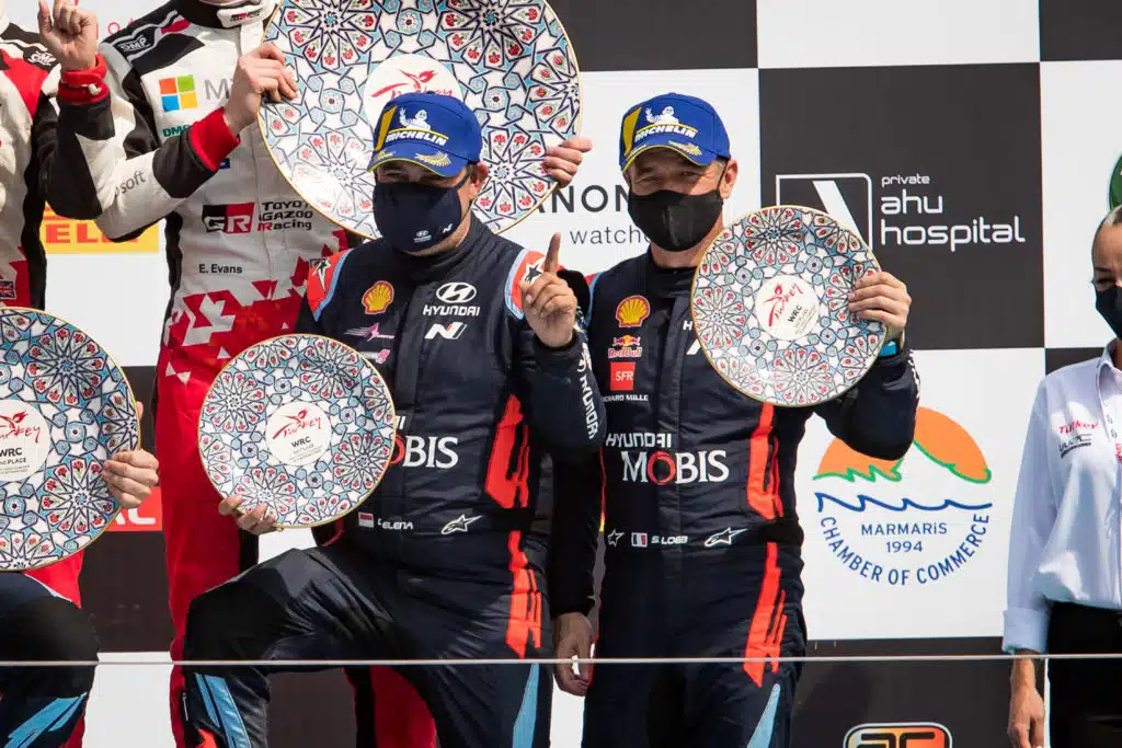 Premier podium depuis le Rallye de Chili 2019, Sébastien Loeb et Daniel et second podium pour Hyundai Motorsport, l’équipage avait mené le rallye vendredi et était en lutte pour la deuxième place avant une crevaison durant l’ES9…