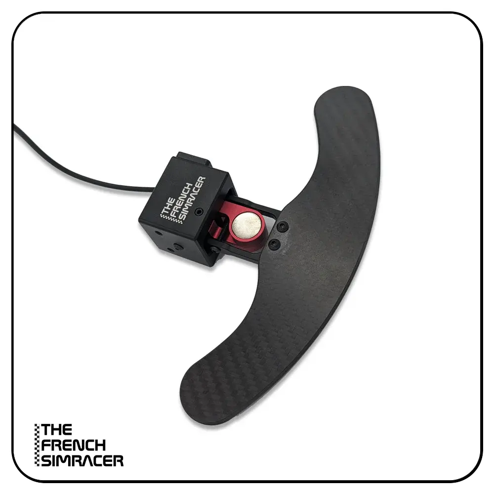 Parlons maintenant de ce « TFS Originals – Push/Pull Shifter Magnétique Rallye » à l’usage ! Avant toute chose la palette est en carbone du plus bel effet. C’est qualitatif c’est beau, bref ça donne envie de jouer.