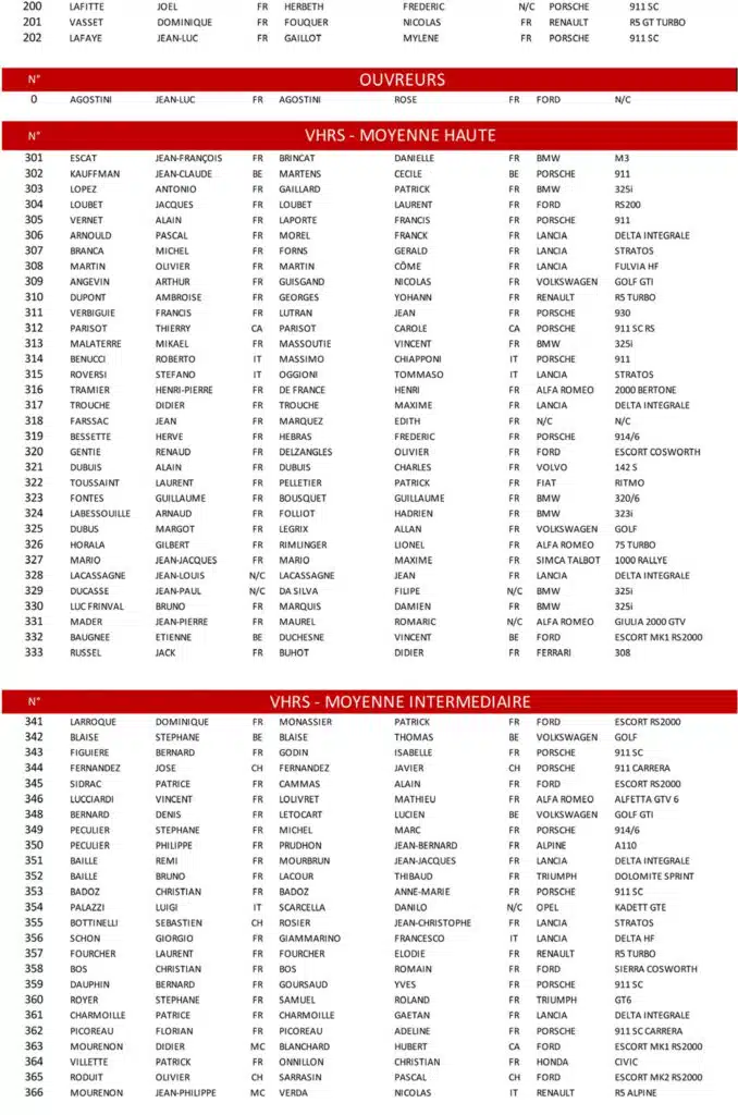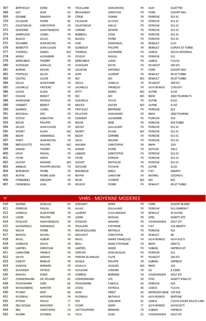 - Les véhicules du groupe classic de compétition de 1977 à 1981 disposant d’un passeport trois volets