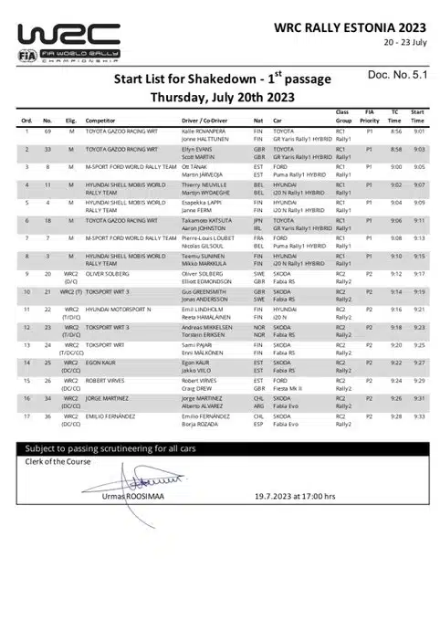 Le Rallye d’Estonie 2023 va démarrer aujourd’hui avec au programme le « Shakedown sur la base de Kastre et ses 4.08 kms. La suite de la journée se poursuivra la première spéciale de Tartu et ses 3.35 kms dès 19 h 05.